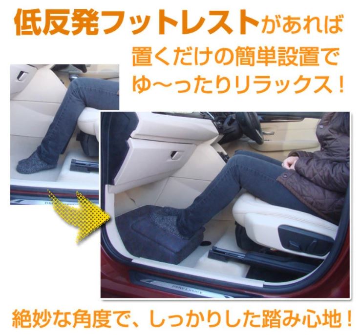 私はまだ車用のフットレストを使ったことはないのですが、低反発素材を使ったタイプなら置くだけで簡単に設置できるそうです。