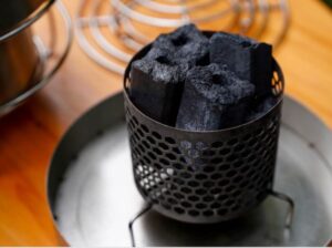 炭の再利用もカゴごと持ち上げて、着火剤で再び火をつけるだけという簡単さ。