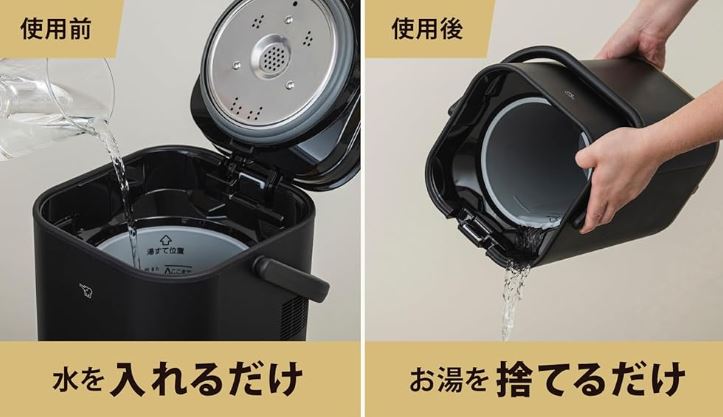 象印マホービンのSTANシリーズから登場したスチーム式モデルは、清潔さと扱いやすさを重視した設計が特徴です。