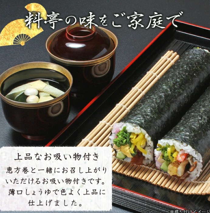 京・料亭 わらびの里 常温配送 料亭の恵方巻 2本入り お吸い物付き 2人前 2026 節分 恵方 南南東 歳徳神 七福神 商売繁盛 無病息災 家内円満 弁当 巻き寿司 寿し のり巻き 料亭グルメ 百貨店グルメ お取り寄せグルメ ギフト 送料無料 産地直送 1/26締切