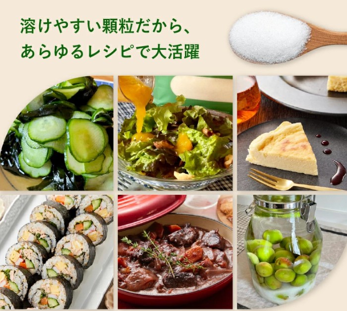 料理やお菓子作り、ドリンクにも使えるため、日常の食生活に取り入れやすい甘味料です。