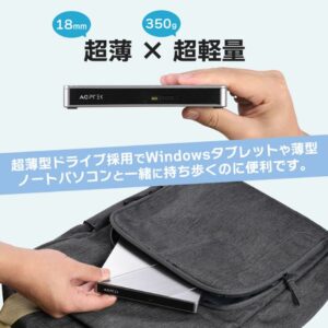 4K解像度のUltra HD Blu-ray(UHD BD)再生に対応したポータブルブルーレイドライブ。(※PC環境に依存します)●同製品従来モデルと比べて奥行きが短くなりさらにコンパクト。●セキュリティスロット搭載。持ち出しなどの盗難を防ぎます。●持ち運びに最適な超軽量・超薄型。●ケーブル1本で利用できるバスパワーに対応。●製品底面にケーブルをフラットに収納できる機構を搭載。●長期記録保存メディアM-Discへの書込みに対応。●大容量メディアBDXLに対応。●USB-A/USB Type-C(TM)の2種類のケーブルを付属。幅広いパソコンで使えます。薄型軽量コンパクトデザイン 薄さ14mm、230gの重さの「超薄・超軽量」ポータブルブルーレイドライブです。 盗難防止としてケンジントンロックのスリットを設置 盗難防止のためのセキュリティロック機構として、ケンジントンロックのスリットを製品背面に設置しています。机などにドライブを固定することができるので、外出先での利用時や、ドライブを共有する際などでの盗難を防止します。【セキュリティロックの注意点】※スロット(穴)のサイズ:7×3mm※シリンダ/ダイアルタイプのセキュリティロックをご使用の場合、本製品の高さよりも径の小さなシリンダ/ダイアルを選択してください。※スロットサイズが対応していても機種によってスロット内部の奥行が対応しない場合がございます。 幅広い相互性 USB3.2(Gen1)/USB3.1(Gen1)/USB3.0/USB2.0と幅広いUSB規格に対応しています。また、付属のケーブルは長さ50cmUSBケーブルを採用しています。USBポート数の少ないパソコンへ本製品を接続する際に、ケーブルの長さが足りずにパソコンやブルーレイドライブの位置取りに苦労することがなく、取り回し良く接続ができます。 USB-A/USB Type-C(TM)の2種類のUSBケーブルを付属USB-A USBポートを搭載するパソコンだけなく、USB Type-C(TM)を搭載するパソコンユーザーも利用できる2種類のケーブルを標準で付属しています。付属のケーブルは長さ50cmUSBケーブルを採用しています。USBポート数の少ないパソコンへ本製品を接続する際に、ケーブルの長さが足りずにパソコンやブルーレイドライブの位置取りに苦労することがなく、取り回し良く接続ができます。 大容量BDXL、長期記録保存メディアM-Discに対応 BDXLの書込み、ディスクイメージの作成、音楽CDの作成、ディスク消去などが可能です。BDXLは128GBのデータ保存ができるため、大容量の動画データやデジカメのRAWデータ、デザインデータなどの保存に便利です。また、M-Discへの書込みにも対応しています。遠い将来まで残しておきたい大切な写真、動画、音楽、システムファイルなどのデータを長期間読込み可能な状態で保持することができます。 4K映像が楽しめるUHD BDドライブ搭載4K解像度(3820×2160ドット)のUltra HD Blu-ray(UHD BD)再生に対応したブルーレイドライブを採用。対応するパソコン、再生ソフト、ディスプレイがあれば、4Kブルーレイの再生が可能です。【動作環境】UHD BDを再生するには下記環境が必要です。 対応OS:Windows10 対応パソコン:Intel SGX(Software Guad Extention)対応 CPU:Intel第7~10世代のCore iプロセッサー(Kaby Lake~Comet Lake) HDMI:2.0/2.0a以降(HDCP2.2出力対応) 再生時にはインターネット接続環境が必要 USB3.2(Gen1)環境へ接続が必要※UHD BD再生ソフトは付属しておりません。別途用意する必要があります。 バスパワーに対応USBケーブル1本で利用できるバスパワーに対応しています。バスパワー供給が不足した場合でも、筐体背面に外部電源(別売ACアダプタが必要)のポートがあります。筐体底面にUSBケーブルの収納機構があり、ケーブルを紛失する心配がなく持ち運びに便利です。※USBケーブルの長さは50cmあるためすべて収めることはできません。※すべてのパソコンでバスパワー動作を保証するものではありません。※USBバスパワー供給が不足する場合は、ACアダプタ(別売)が必要です。別売ACアダプタ:LA-10W5S-10 Macにも対応Macと接続すればBD/DVDドライブとして利用可能です。BD/DVD/CDメディアを利用したソフトウェアのインストール、Finderからのデータの書込み、Apple DVD Playerで市販DVDの再生ができます。※Mac用ソフトウェアは付属しておりません。※Mac標準のソフトウェアをご使用していただくか、別途ご用意する必要があります。※Macでは市販のBDタイトルコンテンツ/地デジ録画コンテンツの再生には対応しておりません。※MacではDVD-RAMの読み/書きには対応しておりません。※各BD/DVD/CDディスクに対して高速書き込みを行う場合には書き込み速度に対応したディスクが必要です。※動画再生ソフト、データ書き込みソフトは付属しておりません。■対応ディスク最大書込み速度/最大読込み速度BD-R XL(3層/4層)*1:4倍速/4倍速BD-RE XL(3層)*2:2倍速/4倍速BD-R DL(2層):6倍速/6倍速BD-RE DL(2層):2倍速/6倍速BD-R 1層:6倍速/6倍速BD-RE 1層:2倍速/6倍速BD-R LTH:6倍速/6倍速BD-ROM: - /6倍速DVD+R DL(2層):6倍速/8倍速DVD-R DL(2層):6倍速/8倍速DVD+R:8倍速/8倍速DVD-R:8倍速/8倍速DVD+RW:8倍速/8倍速DVD-RW:6倍速/8倍速DVD-ROM: - /8倍速