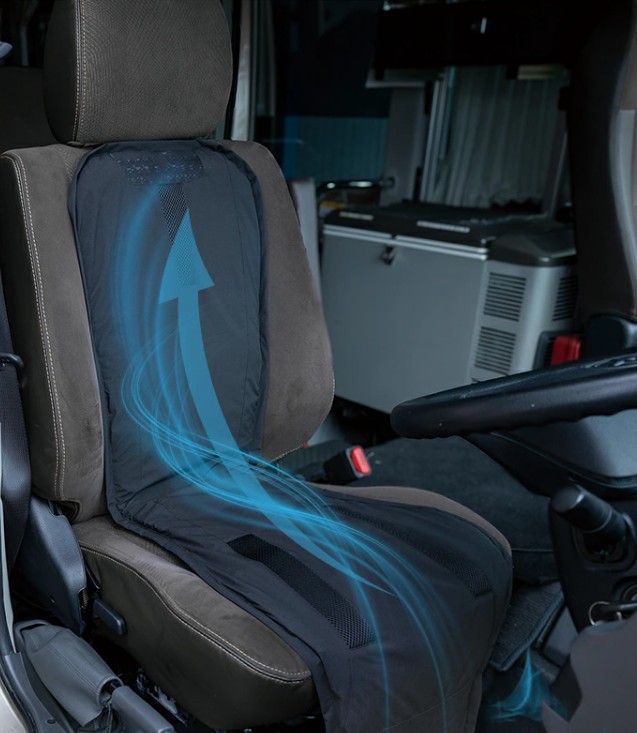 カーシートに設置することで、風の通り道を作り、熱と湿気を外に逃がす仕組みが特徴です。